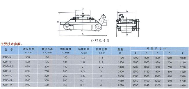 采RCDF系列油冷自卸式電磁除鐵器是在RCDE系列油冷懸掛式電磁除鐵器的基礎(chǔ)上增加了驅(qū)動電機、滾筒、帶刮板的卸鐵膠帶等組成的卸鐵機構(gòu)。具有磁力大、散熱快、防塵、防雨、耐腐蝕、連續(xù)工作、維護費用低等優(yōu)點。問世以來,以操作使用方便、故障率低、維護量小等特點贏得了廣大用戶的好評。